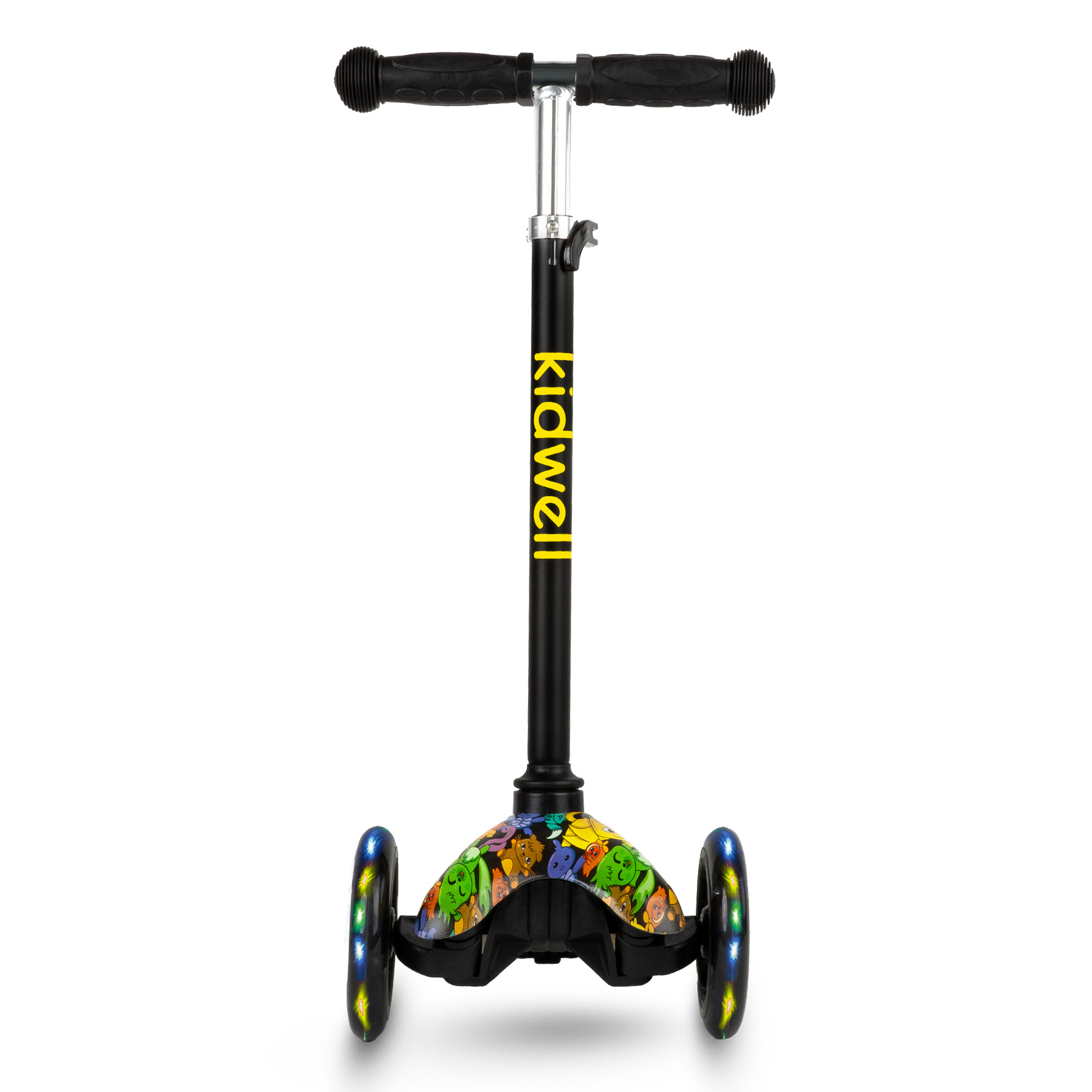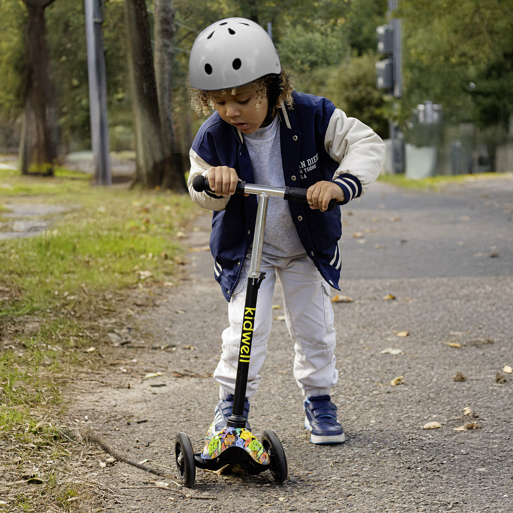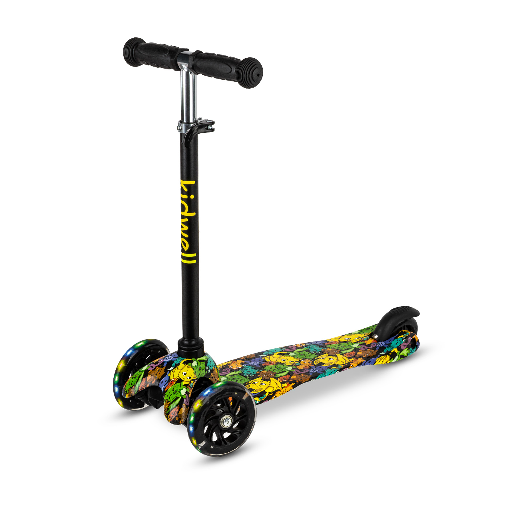 Ciche i trwałe poliuretanowe koła zapewniają bardzo dobrą przyczepność do podłoża. Możliwość złożenia hulajnogi poprzez wyjęcie drążka kierownicy. Ograniczony skręt kierownicy minimalizuje niekontrolowaną zmianę kierunku jazdy.