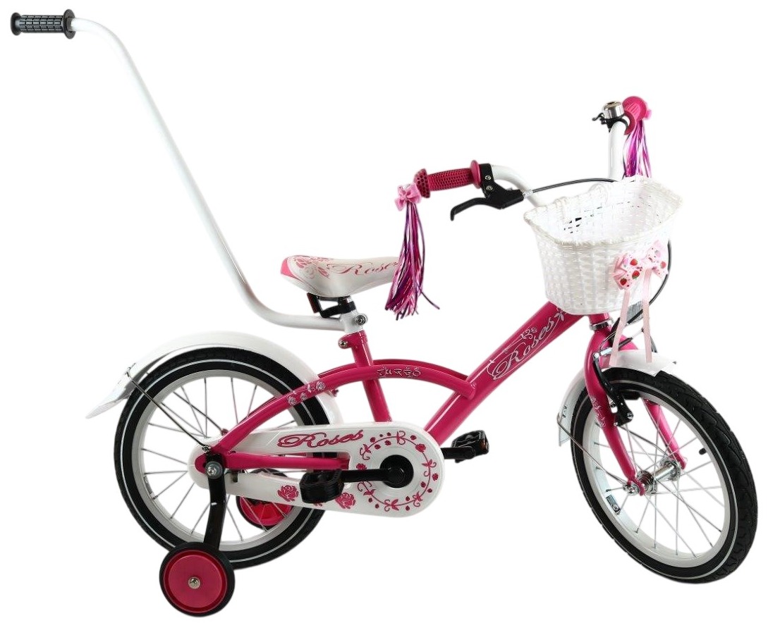 Rower dziewczęcy 16" Roses z koszyczkiem różowy