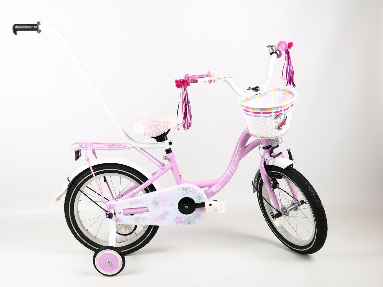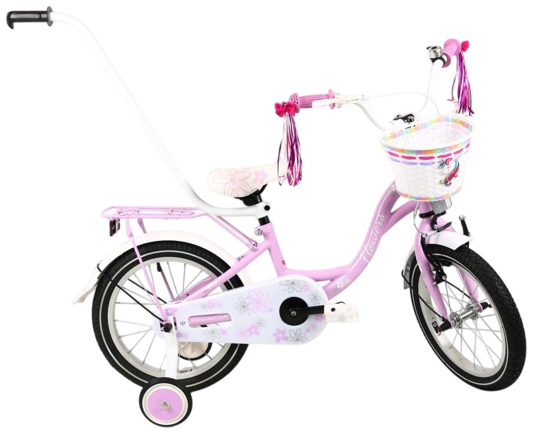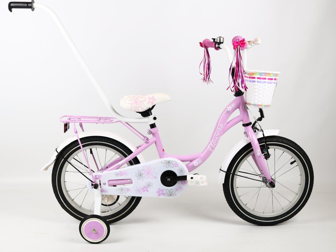 Polski rower dziewczęcy Flowers 16" fioletowy pastel