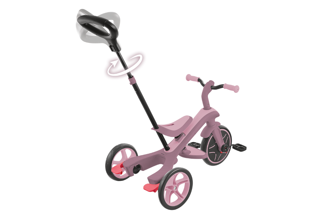 - 4 funkcje w 1: spacer z prowadzeniem, wsparcie w nauce pedałowania, samodzielny trójkołowiec, rowerek biegowy